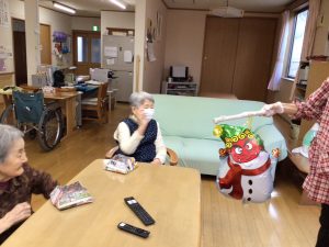 節分(グループホームこいのさと) 2026.02.12 2/3に節分の豆まきをしました。 甘納豆を用意して各階で、福が沢山訪ずれる様に願い豆まきをしました。 その後は、歌を歌ったり甘納豆などのお菓子とお茶を頂きながら和やかに過ごしました。 一覧に戻る