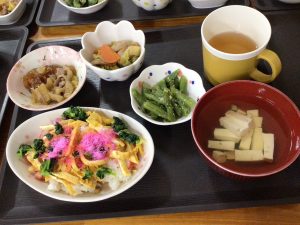 ひな祭り(グループホームこいのさと) 2026.03.10 3月3日にひな祭りを各階で行いました。 昼食にちらし寿司をお出しして「色がきれいで、美味しい。」と大変喜ばれました。 午後は、歌を歌ったり、玉入れをして楽しみました。玉入れは、紅白対抗戦で皆様張り切って参加されました。 その後は、ひなあられなどのおやつを食べながら和やかに過ごしました。 一覧に戻る